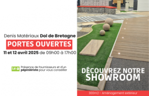 Denis Matériaux Dol de Bretagne vous invite à ses portes ouvertes les 11 et 12 avril 2025, de 9h00 à 17h00. Profitez-en pour découvrir notre exposition de 300 m² consacrée à l'aménagement extérieur