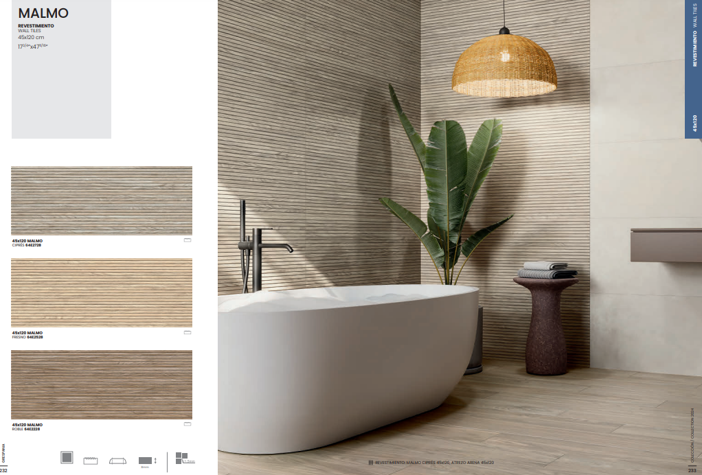 Faience cipres 45x120cm. gre malmo. réf : 64e2728 Référence : 186846 64,49€TTC / m2 Dont écotaxe : 0,03 € HT / m2 Carrelage : 0,034 € HT / m2 Voir le stock disponible pour toutes les agences Sur commande uniquement Commander